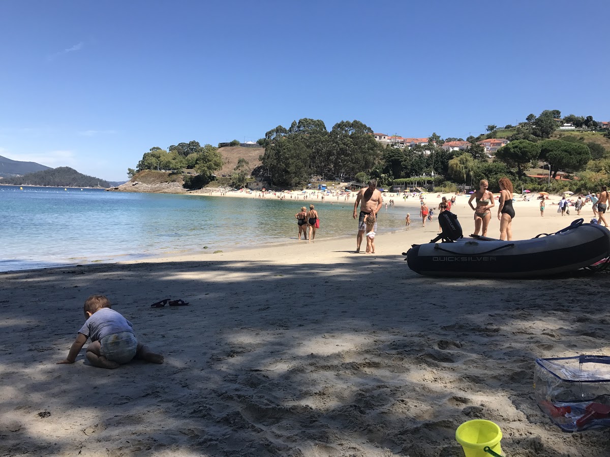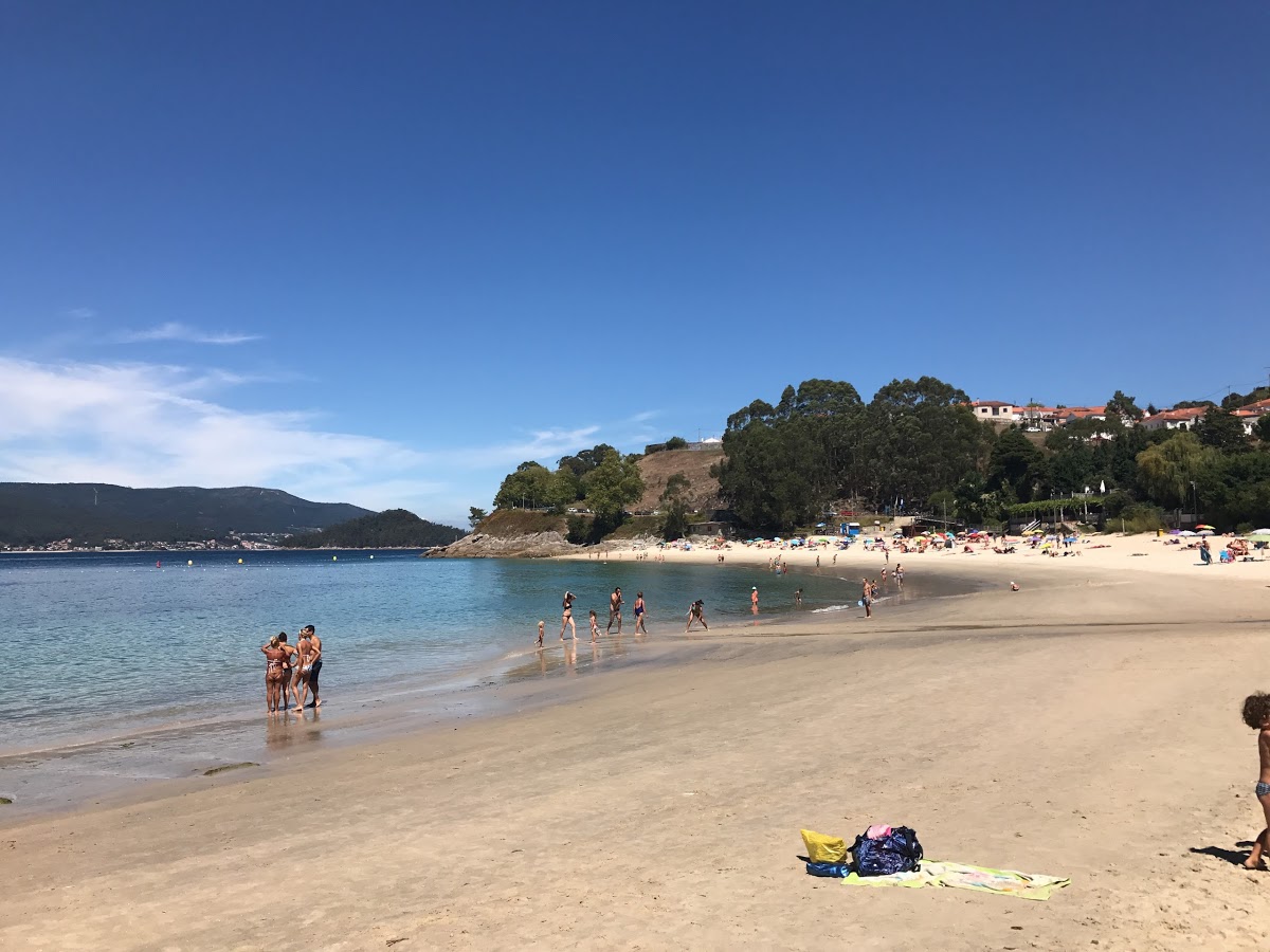 Mogor, es una playa pequeña situada en el municipio de Marín. El color de la arena es blanca y su composición es principalmente de arena. Es una zona de aguas tranquilas. Con las mareas, el espacio de arena útil varía poco.