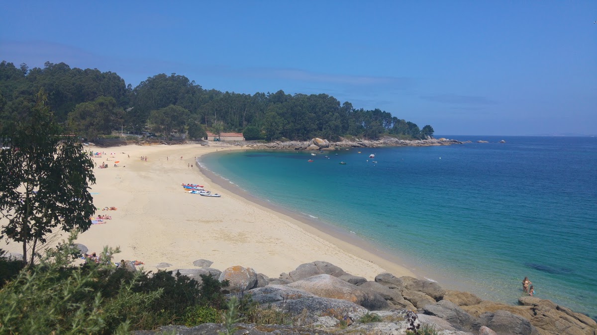 Mourisca, es una playa pequeña situada en el municipio de Bueu. El color de la arena es blanca y su composición es principalmente de arena. Es una zona con oleaje moderado y mucho viento. Con las mareas, el espacio de arena útil no varía mucho.