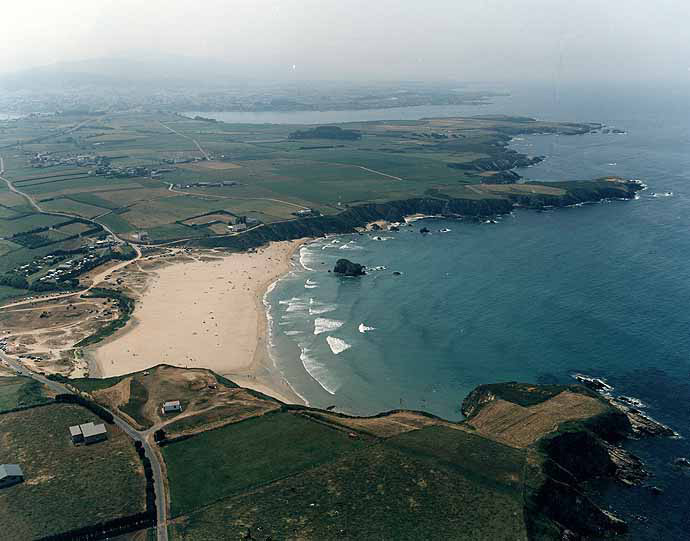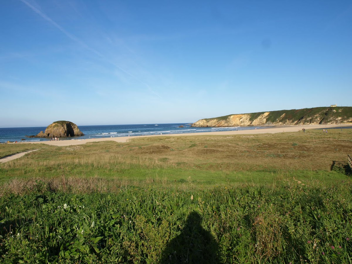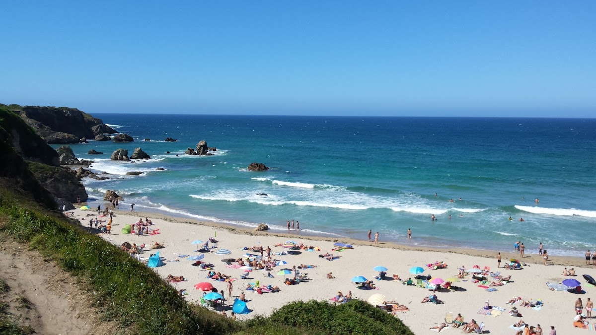 Fantástica playa. Surf, rocas, snorking... Prácticamente no urbanizada. Zona de arena amplísima, incluso con marea alta. Parking.