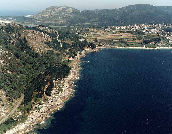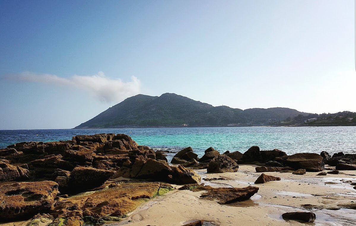 Playa de unos 800 metros de arena fina. Resguarda por el majestuoso granitico «Monte Louro». ¡Ven!.. disfruta del encanto de su entorno. Bandera azul, con todos los servicios , restaurantes, bares, en la misma playa. Totalmente recomendable.
